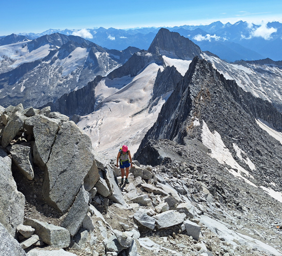 Jedes Gipfelerlebnis ist etwas Besonderes. Ganz oben zu stehen, das Ziel erreicht zu haben, angekommen zu sein. Und dann noch ein 3000er! Für geübte und konditionsstarke Bergwanderer auch ohne technische Hilfsmittel absolut möglich. Etwas an Kondition und Trittsicherheit müssen mitgebracht, dann nehme wir dich mit in die Welt der hohen Berge.